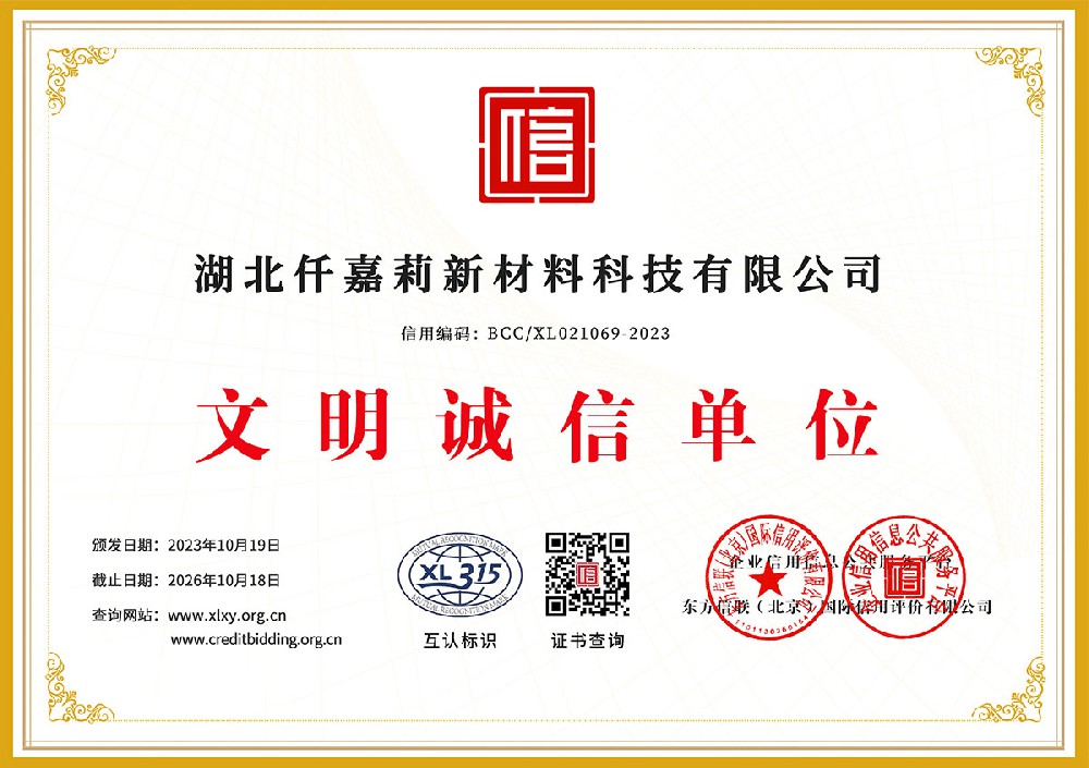 湖北仟嘉莉新型建材有限公司是一家集研发、生产、销售于一体的新型环保建材综合型企业。 本公司始终坚持以顾客需求为导向,以质量求生存,以服务求发展,为客户创造财富,为社会创造价值,依靠科技进步得到迅速发展,形成了规模化生产。公司一贯注重环境友好型和节能低碳产品的研制。公司坚持生产一代、研制一代、设计一代、构想一代的目标,本着对社会负责,对用户负责的高度责任感,不断提高产品质量和服务质量,以达到客户的满意度,使企业的产品质量水平居于行业的前列。 公司本着立足咸宁,服务全国为发展方向,以专业化、规模化、服务化为发展思路,以拔升内涵,拓展外延为发展战略,以人为本·健康环保为发展思想。 本公司竭诚为广大客户提供优质,环保的各种内外墙装饰材料,并为客户提供产品的施工指导、工程设计、成本核算以及承包工程施工,秉着诚信·创新·和谐·共赢的服务宗旨,携手共进·共创美好未来。